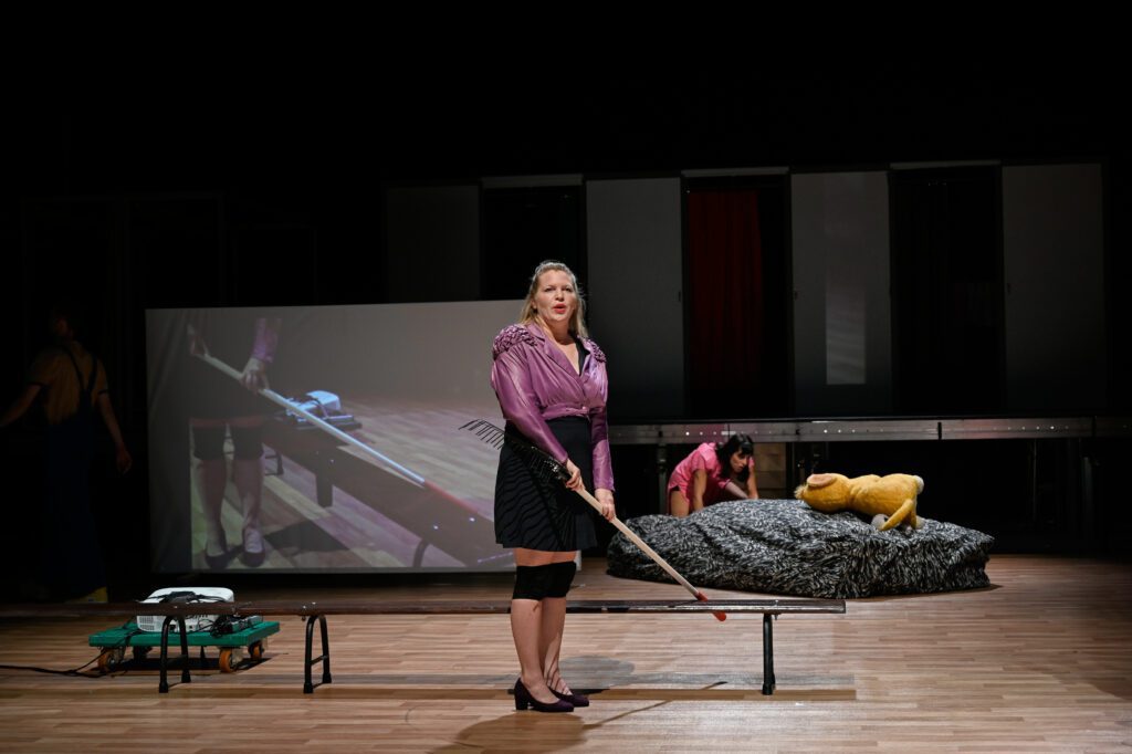 Jill Emerson, the iconic performer from DorkyPark’s earlier works, is back in the show, surrounded by all-new cast members. The characters find themselves in a casting of a reality show after a love break up. They try to be themselves absolute originals and at the same time become archetypes for a mass audience. Fetishized objects of former relationships accumulate like debris under a mountain of rubble.