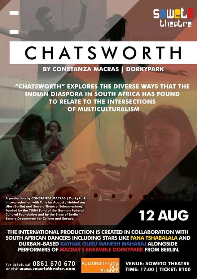 Chatsworth is the name of one of the Indian townships in Durban where Indian immigrants were relocated during apartheid. In “Chatsworth”, Berlin-based choreographer Constanza Macras is interested in showing the diverse ways that the Indian diaspora has found to relate to the intersections of multiculturalism, the global and the local. Traditional Indian dance and drama entangle with contemporary forms and subject matter. Musicals are the common ground on which cultural appropriation is not condemned but seemingly necessary. Through the lens of Bollywood, the performers immerse in a universe of assimilation, transformation and resilience: the diasporic self.