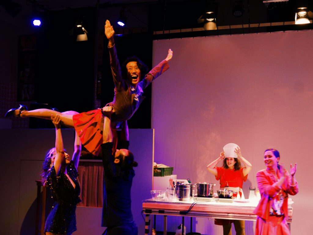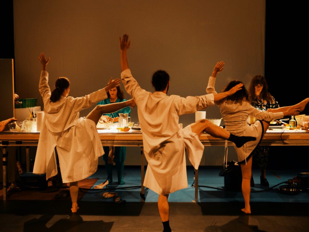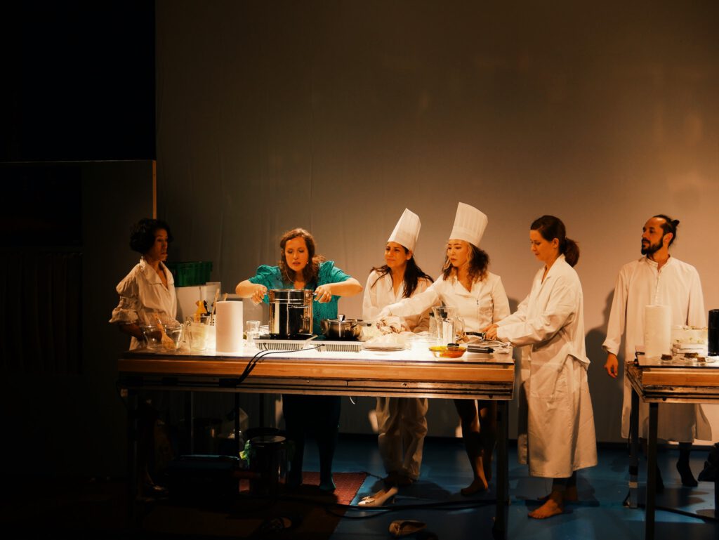 Electrodomestics is a lively and inspiring mixture of a cooking show, a concert, a performance, an expert discussion and dance, in which the group investigates the concepts of cultural background and identity. Based on the performers’ circles of family and friends, the group uses their social surroundings to explore phenomena like collectivity and nationality. The audience joins in the discussion and in this way they are pushed to their own boundaries and stigmata, but also unexpected openness. The boundaries between the performers and the audience are blurred and together they open up a space for exchange, togetherness and spontaneous, creative eruptions.