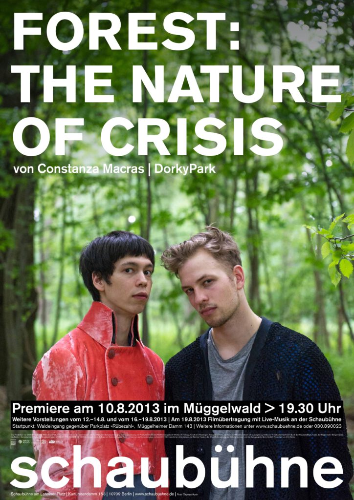 How do romantic concepts of life and nature linger on in the current German “Forest” ideology? In the past, concepts of the “Forest” always found expression in literature and culture as a reaction to a social sense of crisis. It could even be said that they established the political basis for the opposition – as with Robin Hood in Sherwood Forest. In the current climate of economic crisis, which narratives are in demand in society and which are capable of assuming the role? The Nature of Crisis aims to explore the mythological and contemporary motives of change and concerns for the future. Constanza Macras’ international team bring their varied cultural and biographical points of view to bear on the performance as they lead the audience through the “German Forest”. In the enchanted forest, the audience also encounters real environmental activists and forest campaigners, who explain their philosophy of life. Constanza Macras addresses the mythological image of the “German Forest” and connects it to current socio-political and cultural developments. Confronted with the crisis of the global economy fairy tale, the show reviews the German Forest’s current power to transform and takes a look at the sustainability of mythological narratives. – Does the Myth of the (German) Forest comprise a potential for change for our society today?