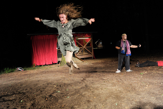 “Now the audience sits close next to each other and secure in the idyllic beautiful forest, listening fascinated to the horror stories from the capitals. Macras developed some beautiful sceneries and assembled a wilfull crew, bizarre, fantastic characters.” – Berliner Zeitung