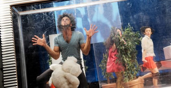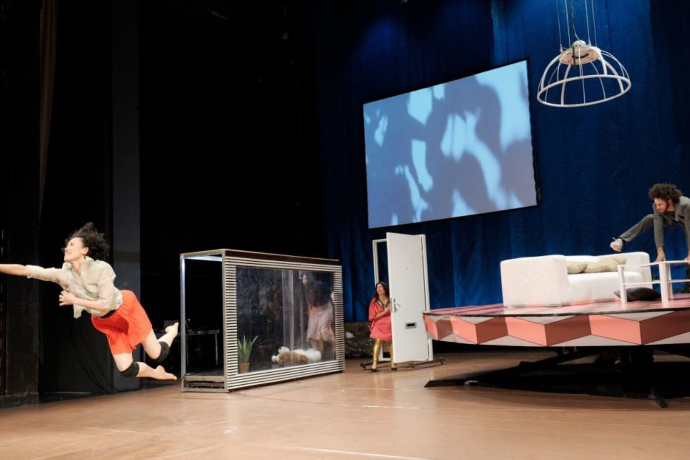 In HERE/AFTER Constanza Macras along with four performers and one musician seeks to find out more about this clinical pattern with all its peculiarities like hyperventilation, panic attacks, dizziness and disorientation. Does everyday life in a metropolis pose a threat to the people? Are panic attacks in a shopping mall not a natural human form of defense, and why do they have to be treated in a therapy? This play explores the relation between anonymity and growing isolation, of the individual and urban life, of public spaces and their pathological manifestations. We will see flats with nightmarish narrowness, we will encounter two women who live together and who come up with all kinds of excuses to convince one another not having to leave home anymore. There will be a lonely musician whose only dream to become a rockstar ends with his terrible fear of big gatherings of people; a foreigner who never speaks; and a delivery man who is the only link between these people and the dreaded “outside”. Never before has it been so easy to be “by oneself” in a society which makes a confrontation with the “outside” avoidable through the sheer endless possibilities of communicating via the internet, chatrooms and delivery services. And actually what is it out there that one absolutely has to experience live?