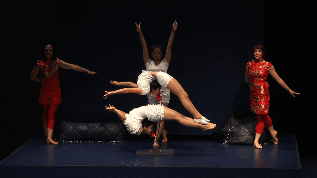 In “The Ghosts” Constanza Macras undertakes an artistic approach to the People’s Republic of China through a social fringe group: circus performers. It seems as if the acrobats, who once achieved fame and glory for their country, have been forgotten and “discarded” by Chinese society, even though many of them are still very young. Bringing the present situation of these artists closer to the audience is particularly appropriate because, due to the 2000 year old history of Chinese acrobatics, important philosophical guiding principles as well as historical and cultural Chinese aspects can be found in it. What gaps does China’s economic catch-up cause in their society? And how does an acrobat live today in this constantly changing society? Starting from the condition of the “hungry ghosts” in Chinese ghost mythology, in whose condition the “isolated being” of the acrobats is reflected, Constanza Macras confronts these questions in order to deal with a social group that is largely unknown and regarded as inferior in China. Macras’ “THE GHOSTS” is now intended to temporarily enable the acrobats to return to life. They are to become visible with their history. In addition to four members of her company Constanza Macras | DorkyPark, Macras has cast five Chinese circus acrobats and a Chinese musician. As always, Macras approaches her subject with different theatrical means such as dance, music and text.