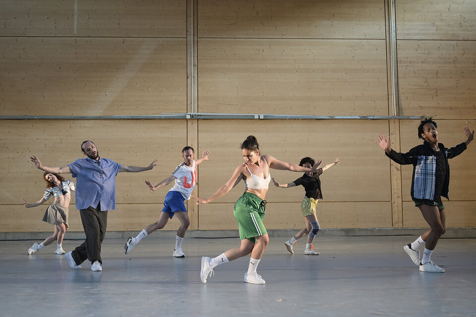 I Feel You is a group of people searching for access to complex feelings such as empathy and excitement through the infinite possibilities of today’s entertainment media. Starting from the nature of digital space and its effects on interpersonal interaction, the choreography is created with the help of neurophysiological findings. It is about the phenomenon that the perception of physical movements, caused by certain emotions of the moving person, generate the same emotions in the observer. This means that we actually feel with the other person – in the truest sense of the word, we can “empathise” with them. The choreography becomes a search for what activates our brain in our body as a result of having such mirror reactions.Empathy is also treated musically by incorporating genres of classical and pop music, which paradigmatically serve as aesthetically exaggerated empathy catalysts, into the discourse: What is it about them that touches people so strongly, and how is it that massive emotional responses can be generated by mere melodic and rhythmic formulas that linger in our ears and cause an entire opera house or stadium to be flooded with a collective flow of tears?