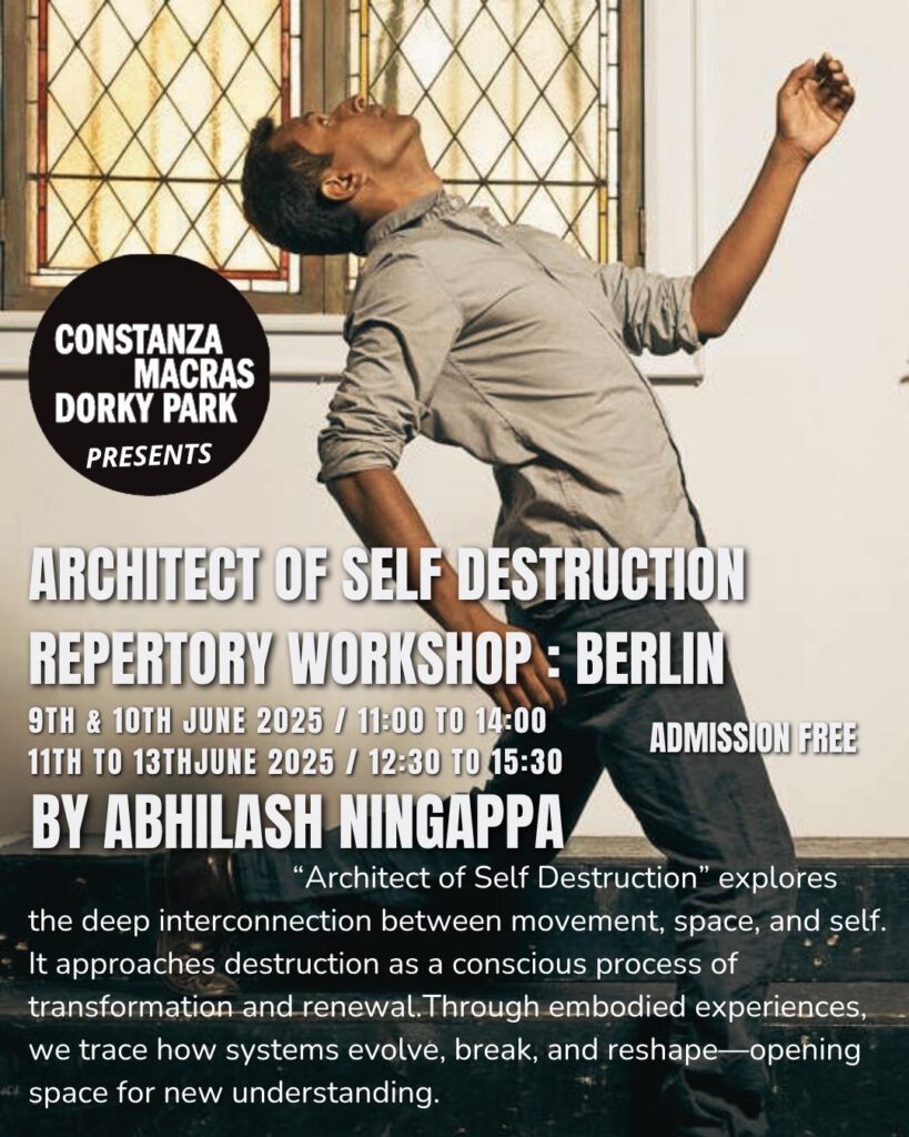 “Architect of Self Destruction” explores the deep interconnection between movement, space, and self. It approaches destruction as a conscious process of transformation and renewal. Through embodied experiences, we trace how systems evolve, break, and reshape – opening space for new understanding.