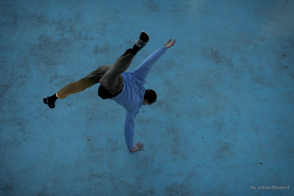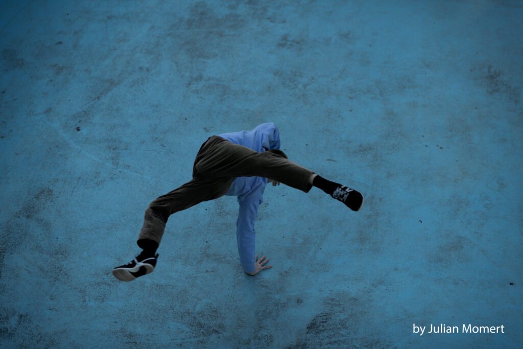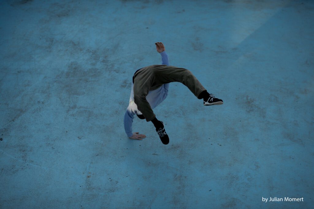 Šuka Horn was born and raised in Germany, where he began training in breakdance at the age of 12. During his dance studies at Codarts University in Rotterdam, he completed an internship with “18 monkey dance theatre” in Bangkok. After graduating, he worked with R.O.P.A. in Spain and created a solo piece with the support of Dansateliers Rotterdam. In 2020, Šuka relocated to Athens to join Dimitris Papaioannou’s production “Transverse Orientation”, which led to the creation of the duet “INK”. After touring the world for four years with those productions and his workshops he decided to move to Leipzig and focus solely on developing his research and teaching. Šukas “Upside Down Inside Out” workshops have been taught in Universities, Companies, Festivals and Studios in 18 different countries.